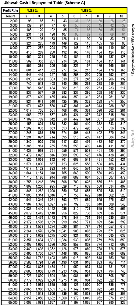 INTREST RATE @ KADAR FAEDAH DAN ANNUAL PERCENTAGE RATE (APR) ADALAH SERENDAH DARI 4.35% SETAHUN SEHINGGA 4.99% SETAHUN. TEMPOH BAYARAN BALIK PINJAMAN ADALAH DARI 2 TAHUN SEHINGGA 10 TAHUN.